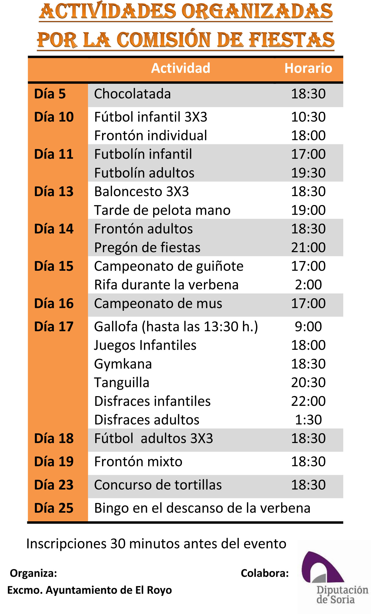 ACTIVIDADES ORGANIZADAS POR LA COMISIÓN DE FIESTAS